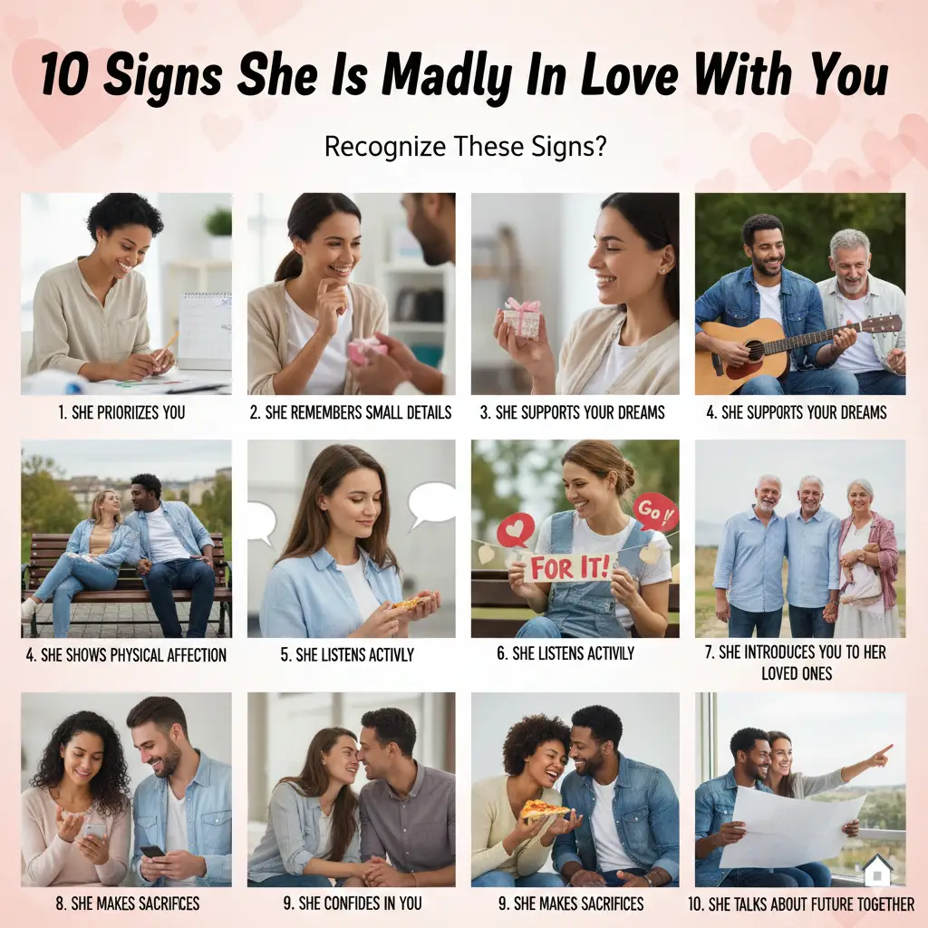 Love whispers through actions, not just words. Here, we explore 10 signs she is madly in love with you, backed by psychology and examples. Each one highlights body language signals, romantic interest indicators, and more. Pay attention—these aren’t random; they’re her way of saying, “You’re my person.”