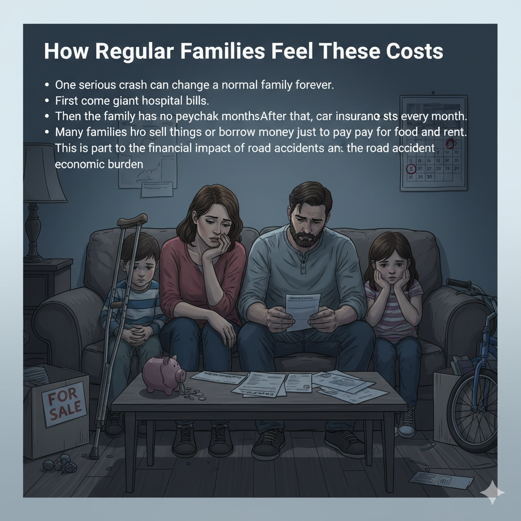 Many families have to sell things or borrow money just to pay for food and rent. This is part of the financial impact of road accidents and the road accident economic burden that hurts real people every day.