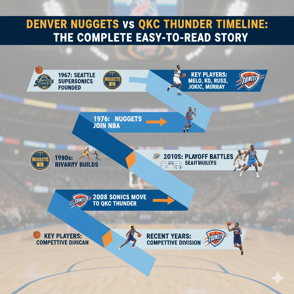 Hey basketball fans! Do you ever wonder how the Denver Nuggets vs OKC Thunder timeline became one of the most exciting stories in the NBA? This guide is made super easy so even young fans or new fans can enjoy it. We will walk through every important year, every crazy playoff series, and all the cool stats. Let’s jump in!