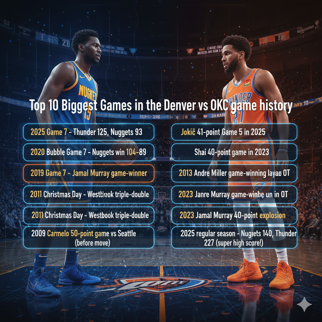 That series had everything – comebacks, blowouts, and superstar plays. It is already one of the best OKC Thunder vs Denver Nuggets rivalry moments ever!