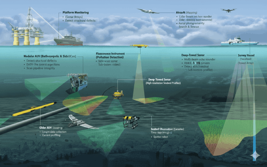 Hydrographic surveyors collect data about water depth, tides, currents and the shape of the sea or riverbed. They often use sonar systems, GPS and specialized underwater equipment.