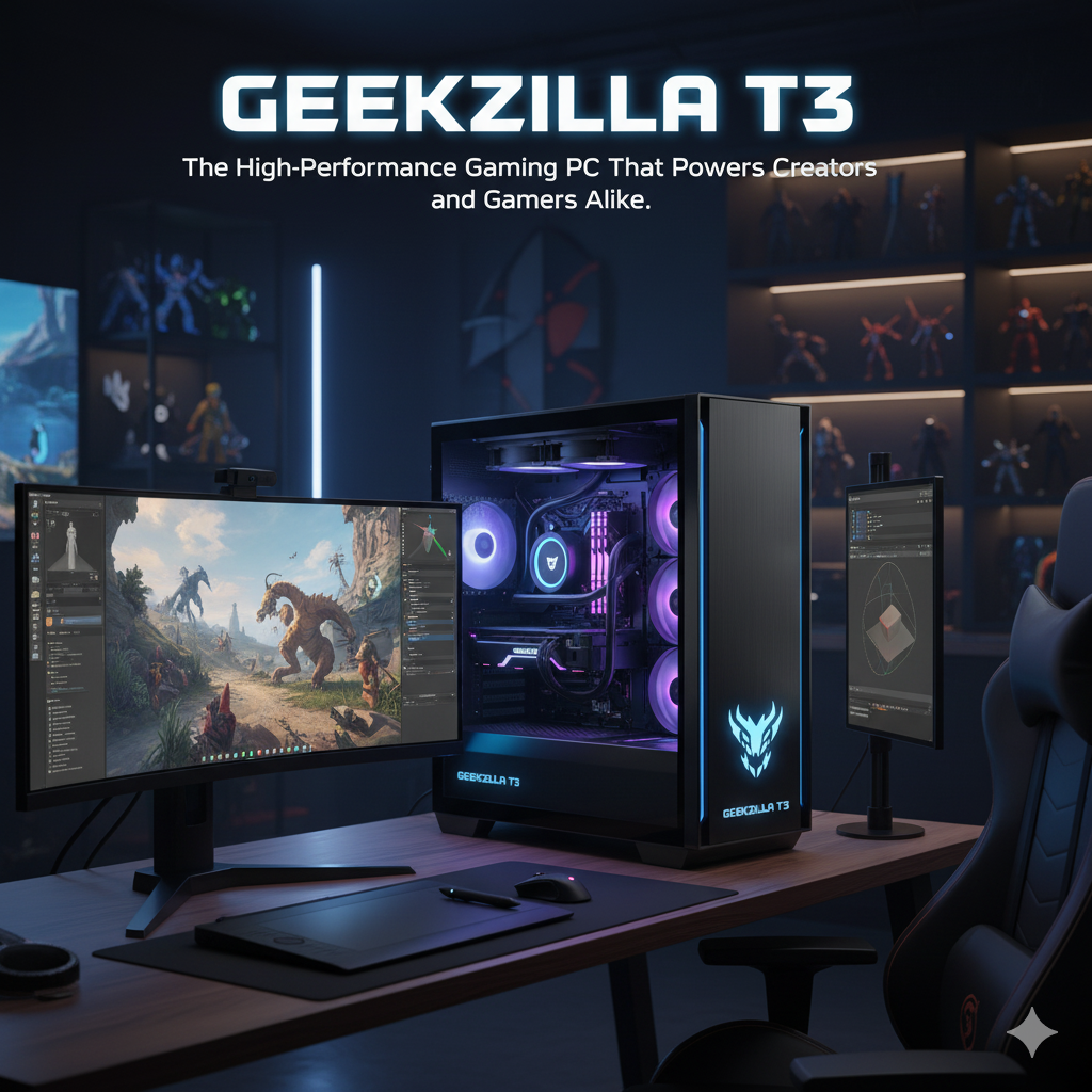 The Geekzilla T3 redefines what a gaming PC can be – a high-performance gaming computer that crushes 4K gaming, accelerates video editing, and streamlines 3D modeling all in one sleek package. With robust specs, intuitive features, and solid value at $1,899+, it’s a smart pick for gamers, creators, and pros seeking no-compromise power. From its modular design to benchmark-topping performance, it delivers reassurance that your tech investment lasts.