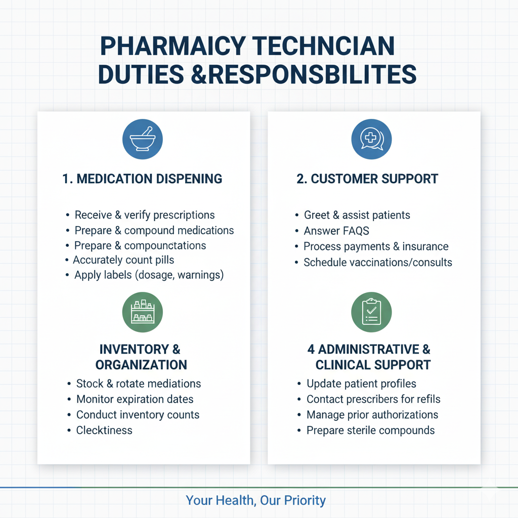 If you’ve ever picked up medicine at a pharmacy, you’ve probably noticed there’s always someone besides the pharmacist handling things. That’s usually a pharmacy tech. Their job is a mix of customer service and medical support.