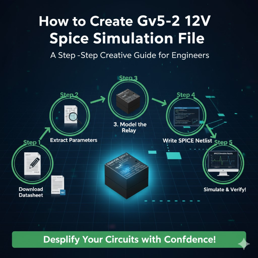 Use LTSpice free from Analog. PSpice for pros. EDA tools like KiCad integrate. Circuit modeling software is easy. In Germany, Multisim too. How to use g5v-2 relay in ltspice import sub.Why No Official Omron GV5-2 12V SPICE FileOmron gives datasheets not models. Relays are hard to model exactly. Users are behavioral. Omron g5v-2 simulation model community driven. Safe for sim.Future of Relay SimulationsAI may make models auto. More params in sheets. Schematic simulation gets better.