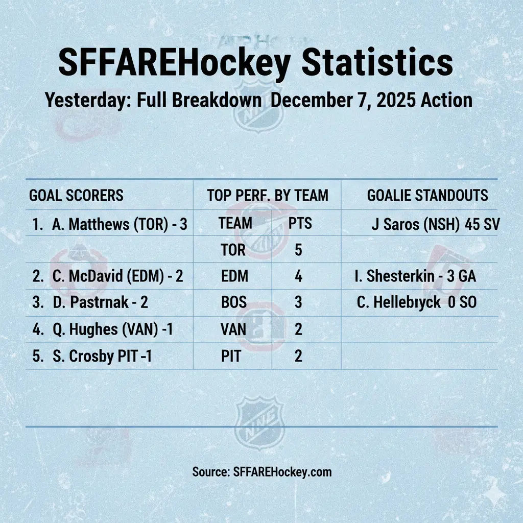 SFFAREHockey Statistics Yesterday: Full Breakdown of December 7, 2025 Action