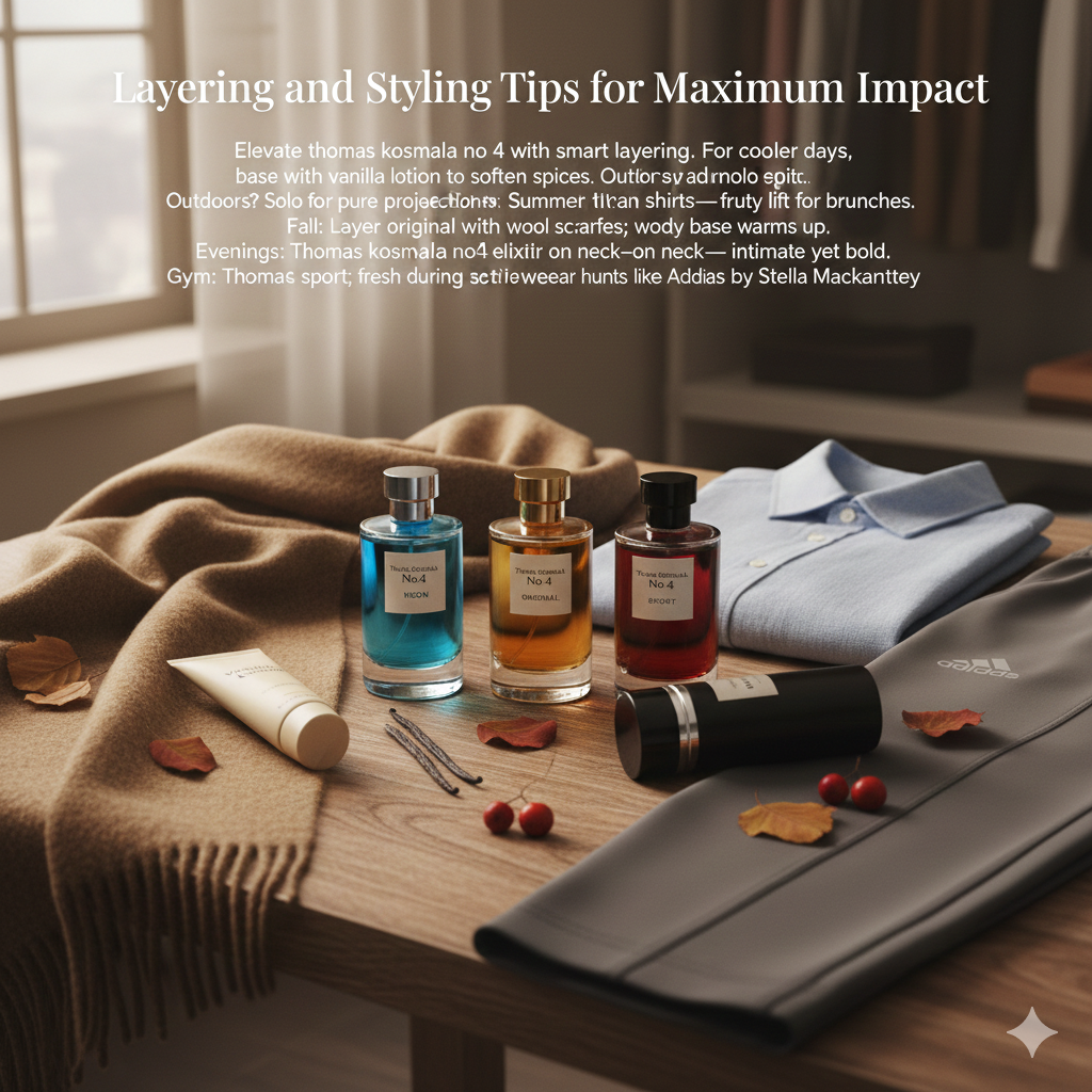 Elevate thomas kosmala no 4 with smart layering. For cooler days, base with vanilla lotion to soften spices. Outdoors? Solo for pure projection.