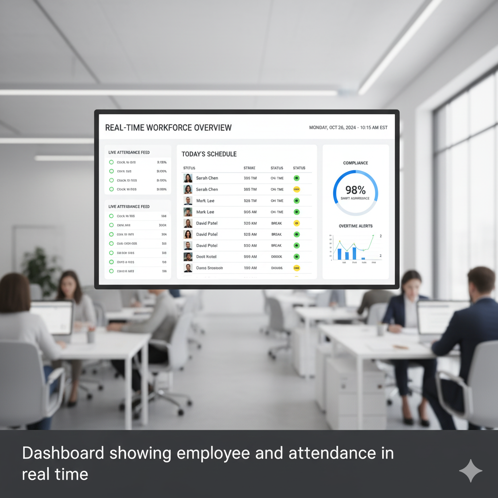 - Time and attendance tracking – Monitoring when employees clock in/out.