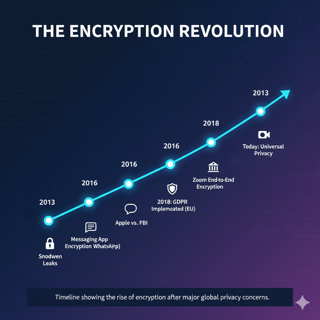 Back in the early 2000s, companies did not talk much about encryption. But after big scandals like Edward Snowden’s revelations in 2013 it became a selling point. People wanted privacy and tech giants had to deliver.